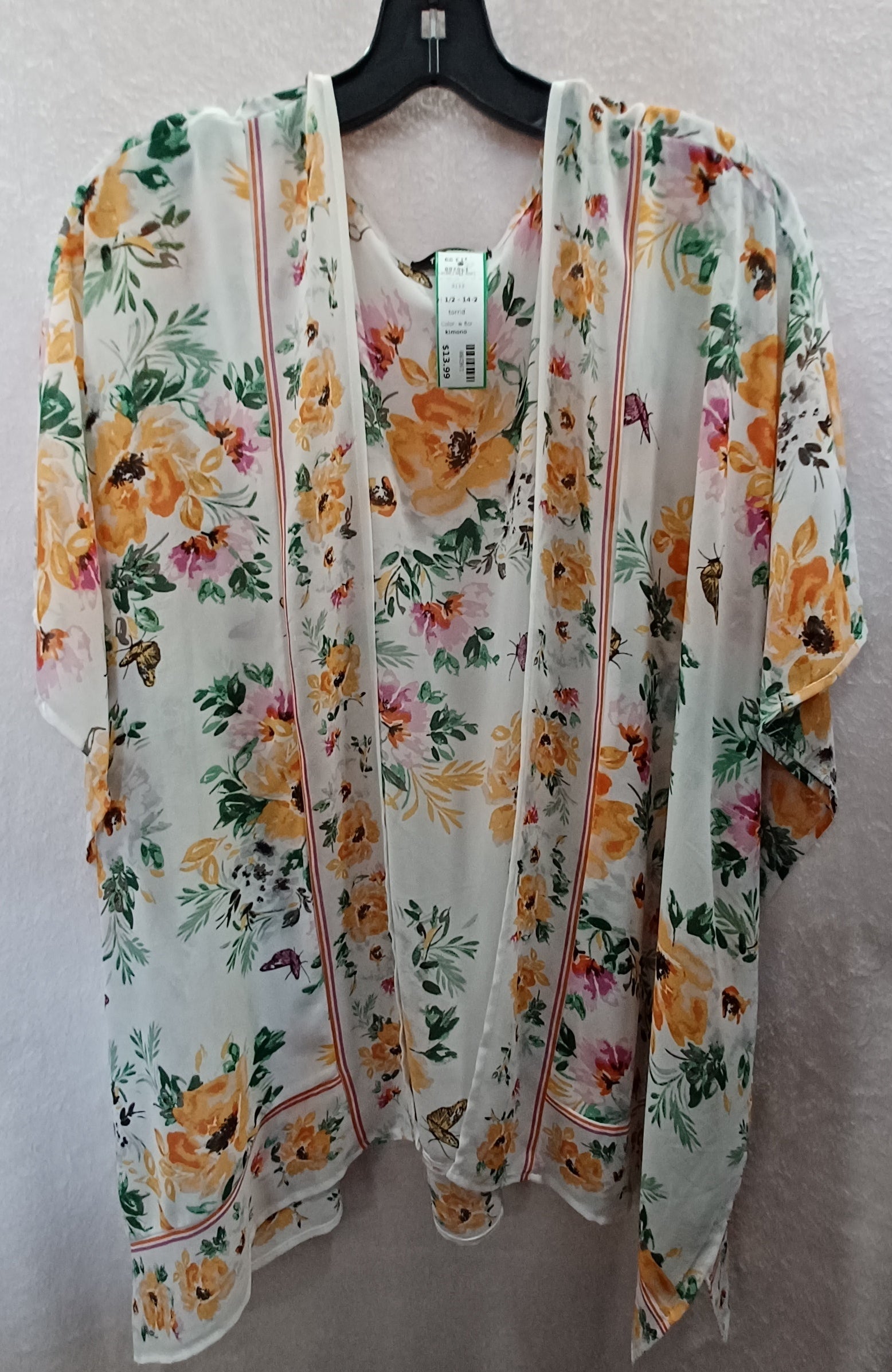 Kimono with open front design in white floral print.