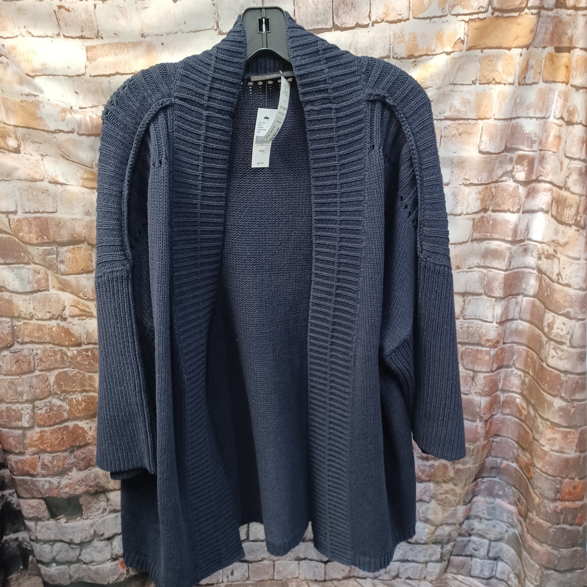 Brand new with tags, long sleeve open front cardigan in navy blue.