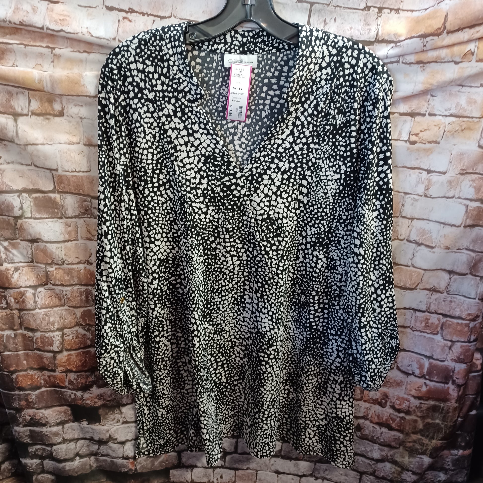 Half sleeve black and white printed blouse.