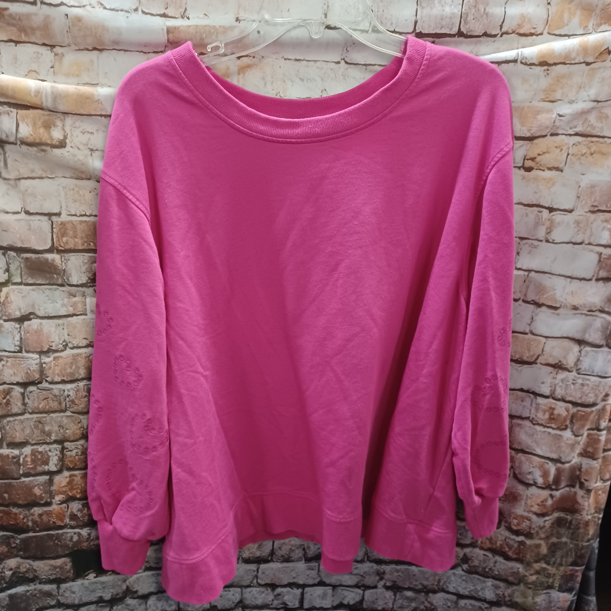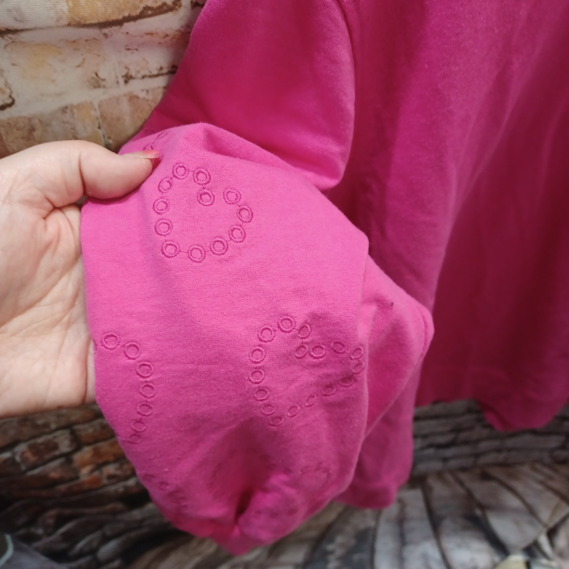 Love this pink sweatshirt that is anything but basic. Its long sleeves are adorned with embroidered hearts. Subtle but so cute.