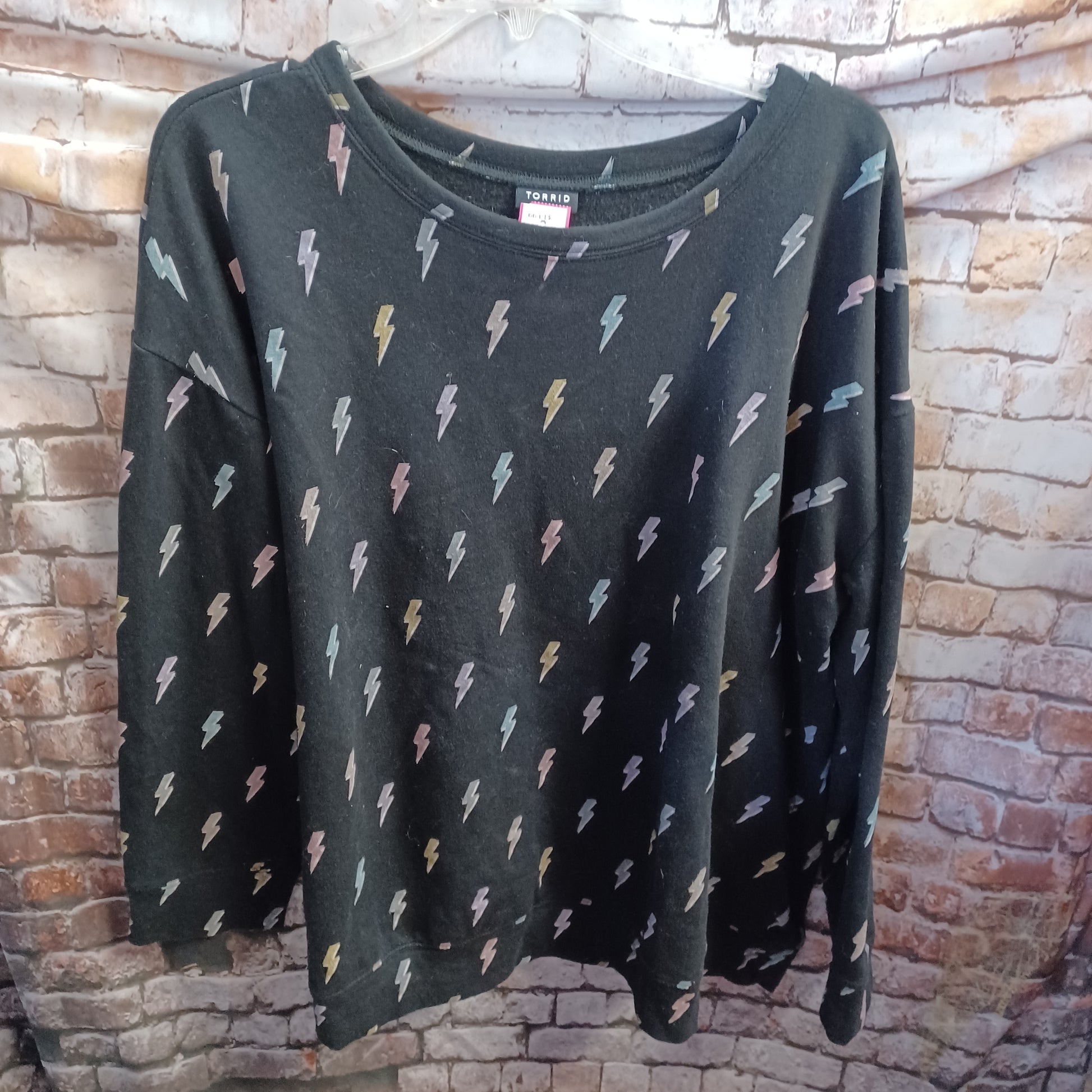 Fits an 18/20. Long sleeve black sweatshirt with lightning bolt graphics