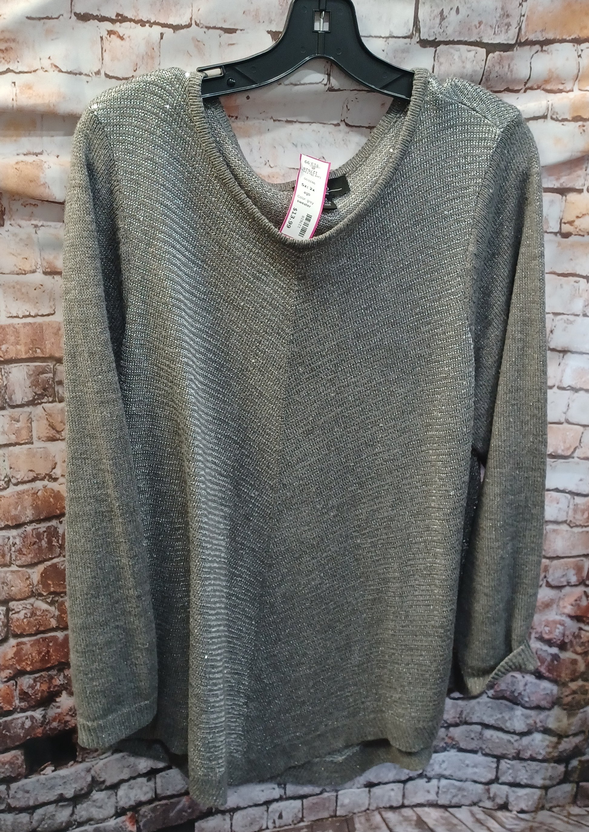 Long sleeve sweater in grey with silver threading that is a winter wonder.