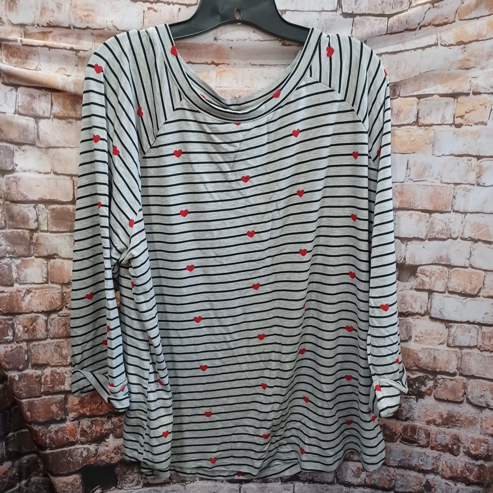 Cute half sleeve knit top in grey with black stripe and cute little red heart print.