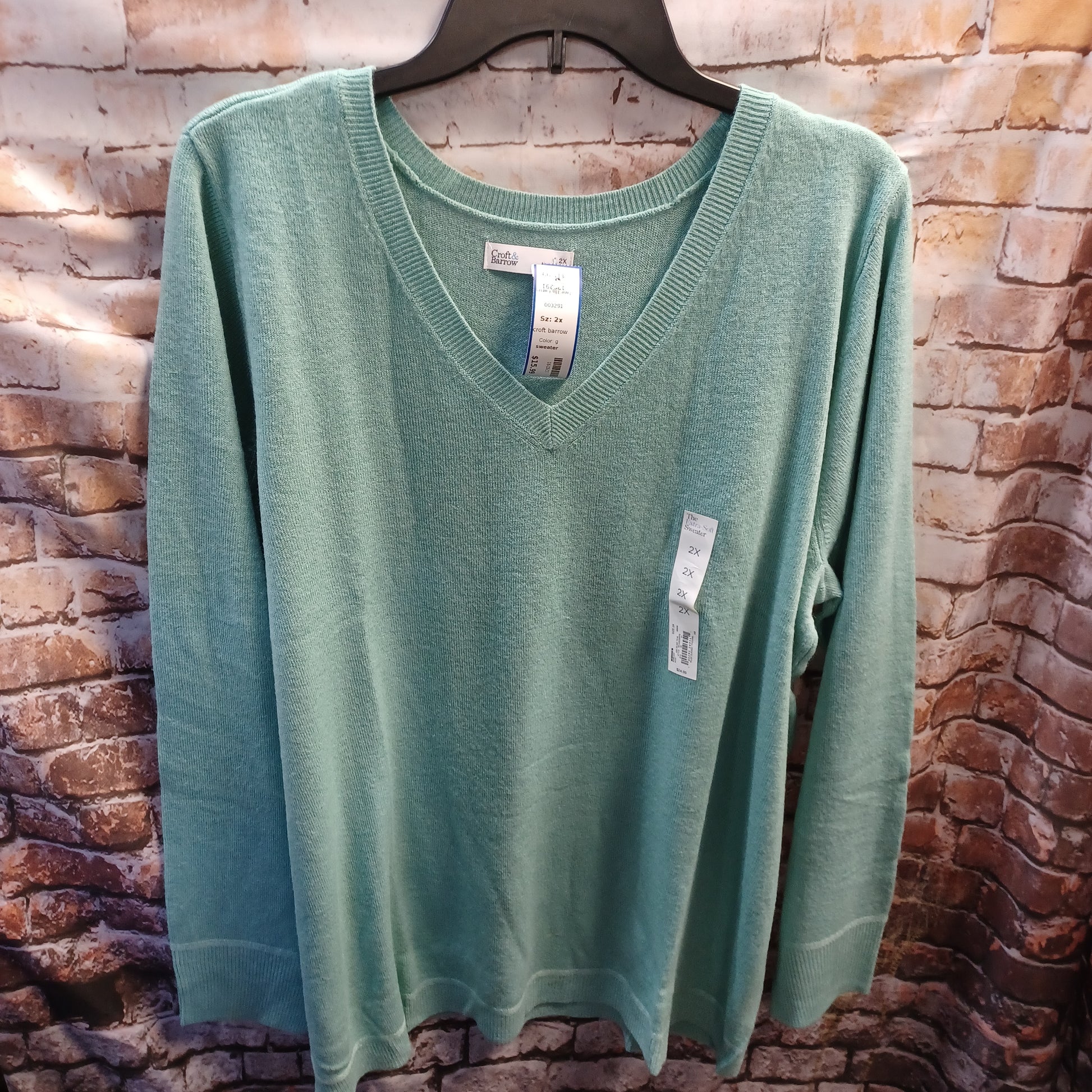 Brand new with tags, long sleeve light weight sweater in a soft teal green. V neck and so soft!