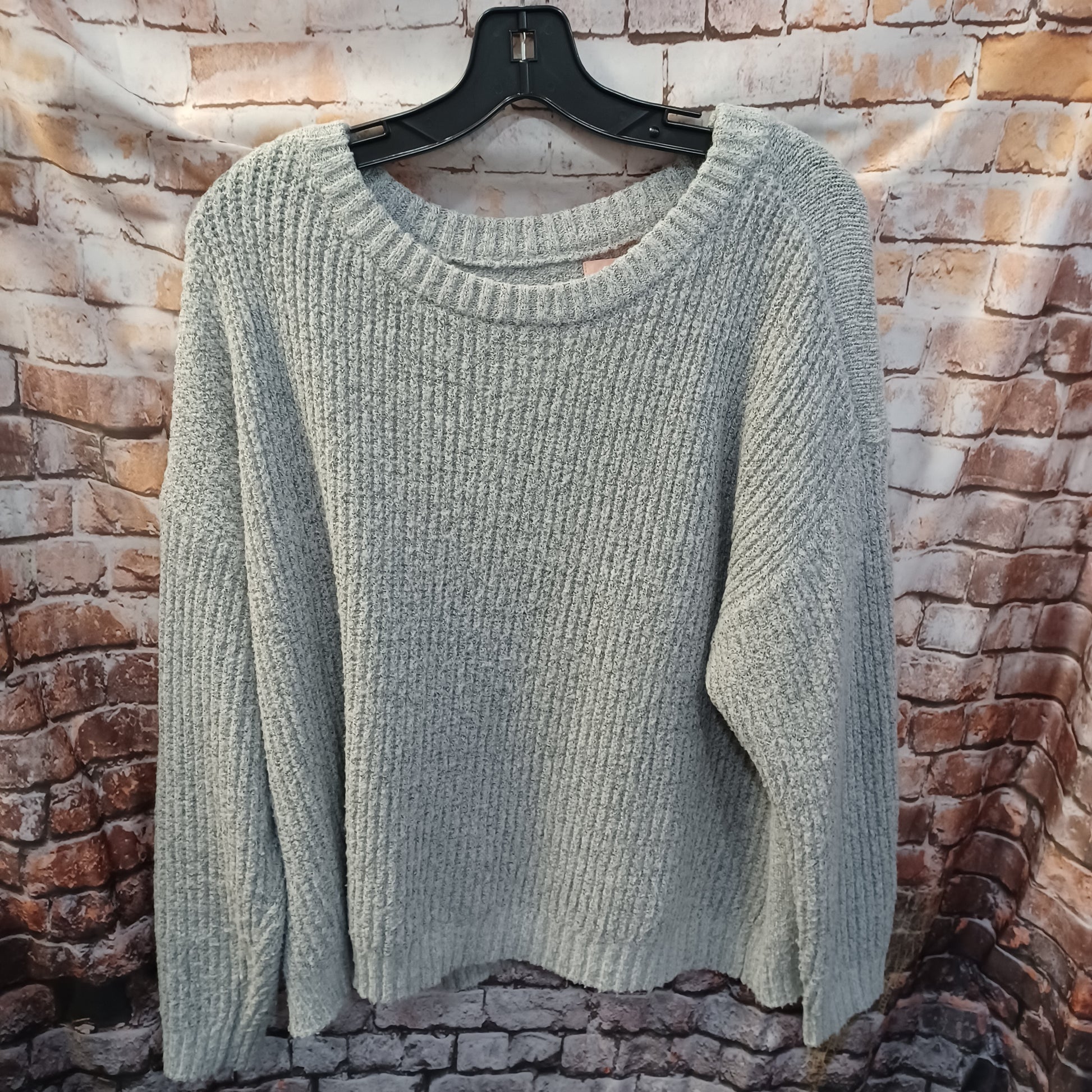 Long sleeve rib knitted sweater in grey.