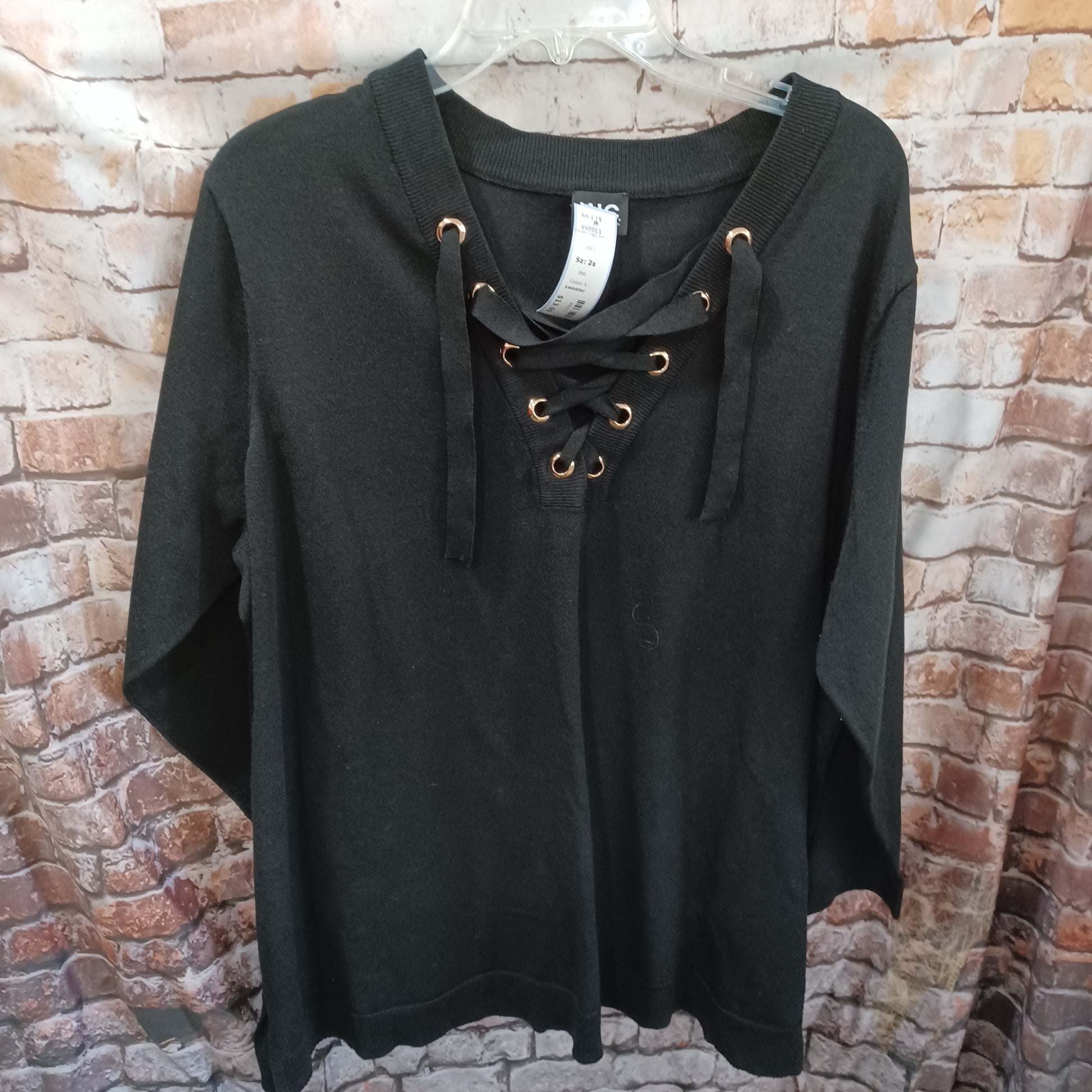 Long sleeve sweater in black with gold gromet tie up in the front for added design.