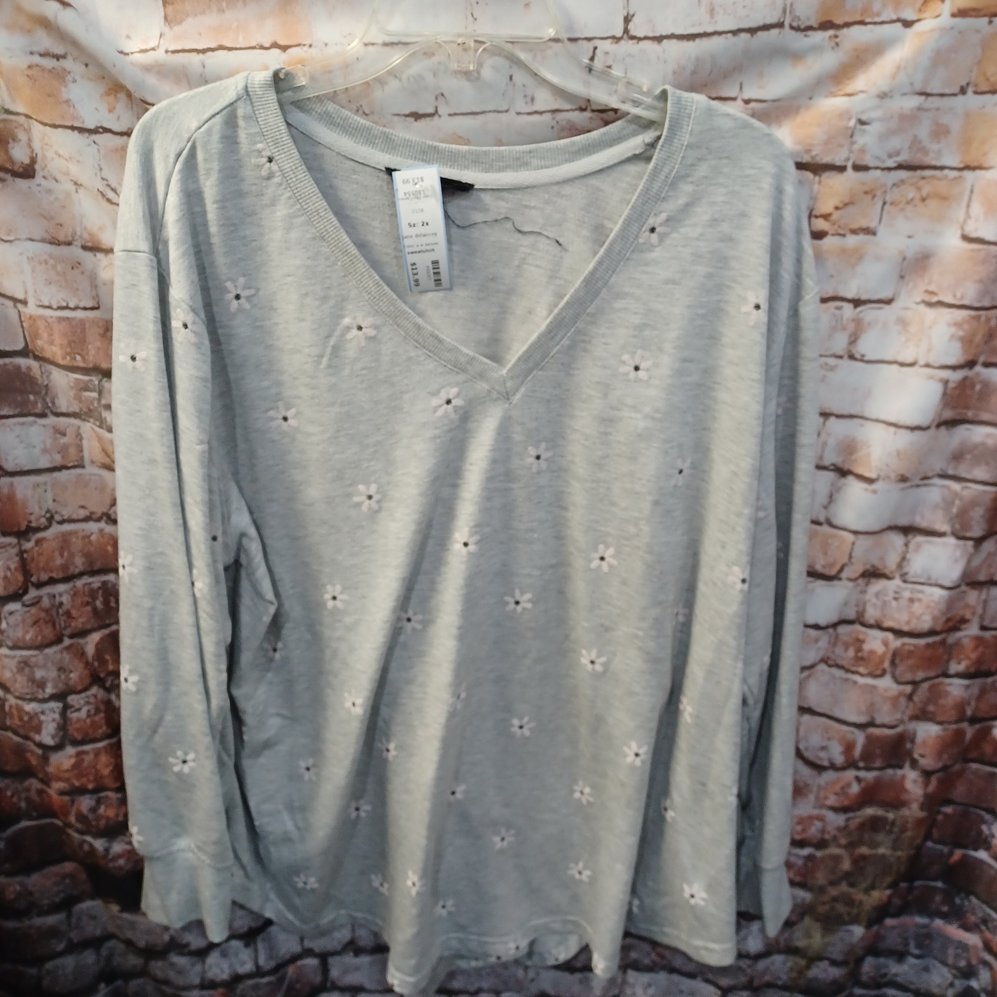 Long sleeve sweatshirt in grey with cute floral print in black and white