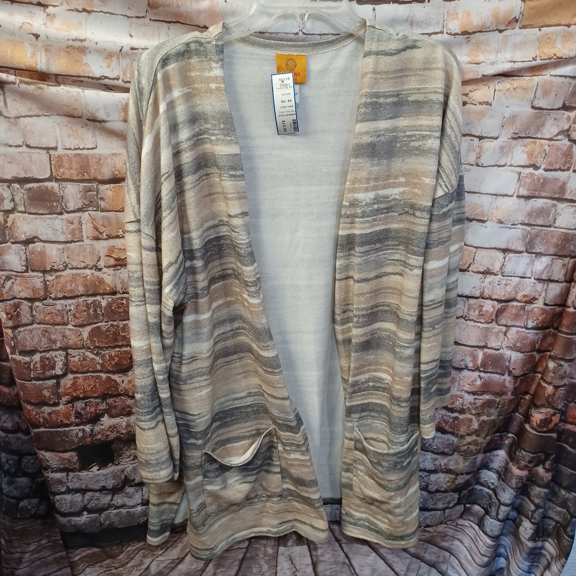 Long sleeve knit style cardigan in beautiful neutrals. No close front makes this a wardrobe staple for fall.