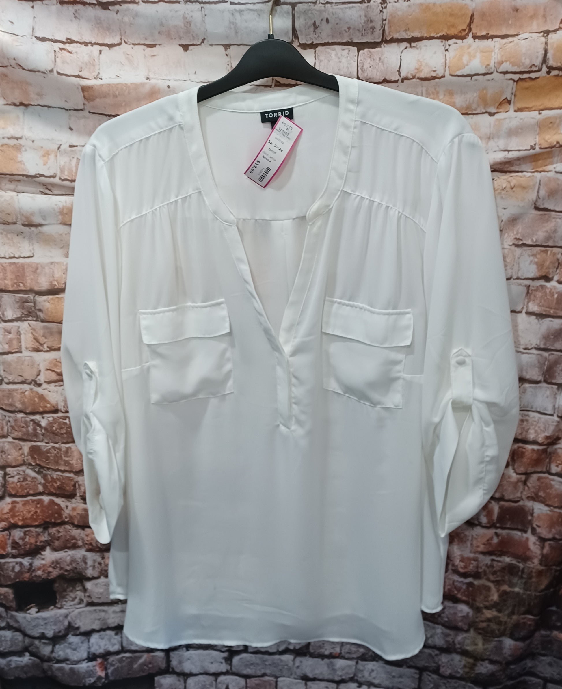 Fits a size 22/24, Half sleeve white pull over blouse. Can be dressed up or down.