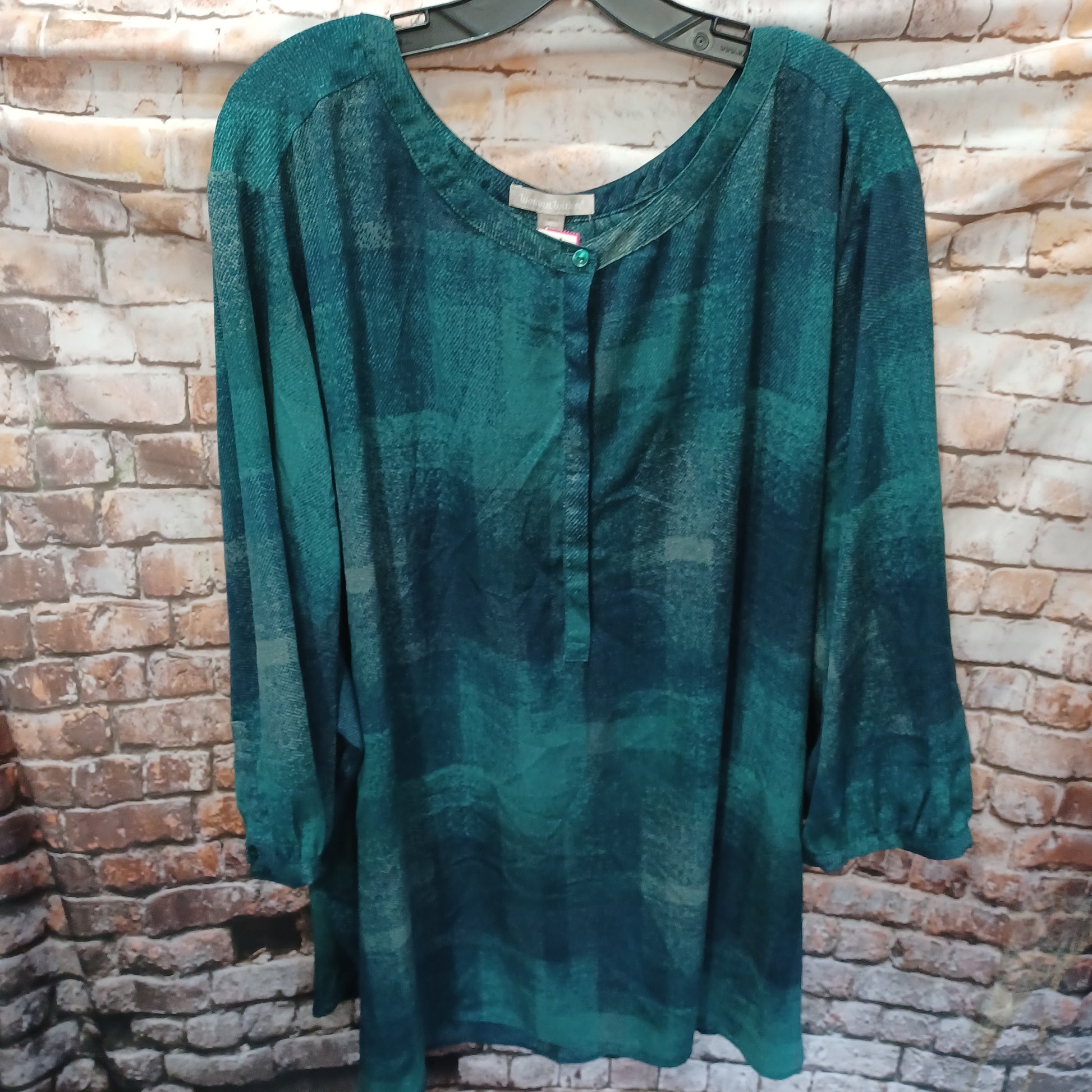 Half sleeve blouse in grey emerald green print. Perfect for fall.