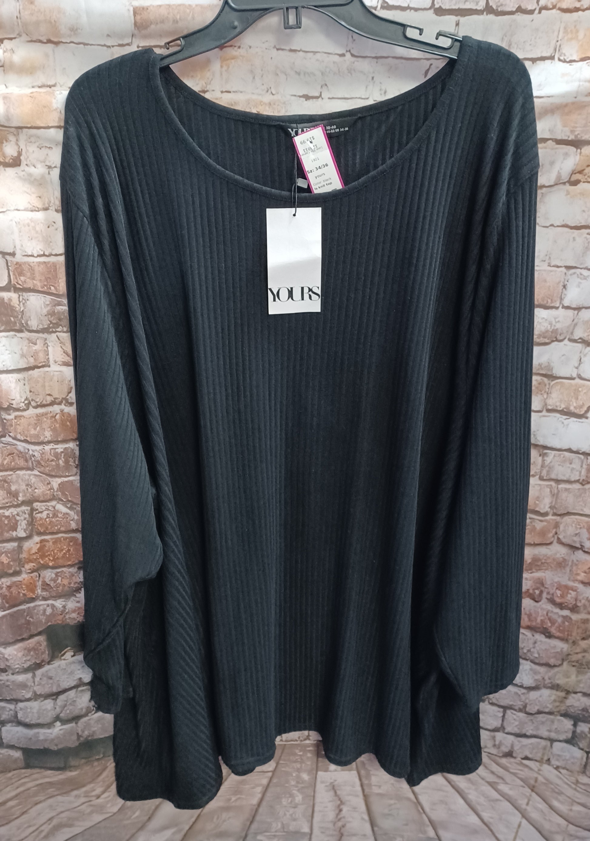 Brand new with tags, knit is ribbed and it has long sleeves. Done in black