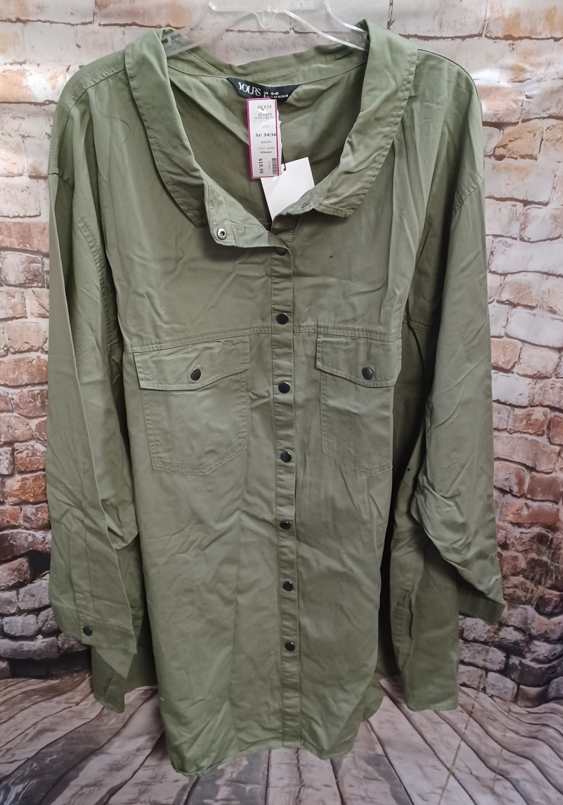 Brand new with tags, snap up blouse in army green. Long sleeves