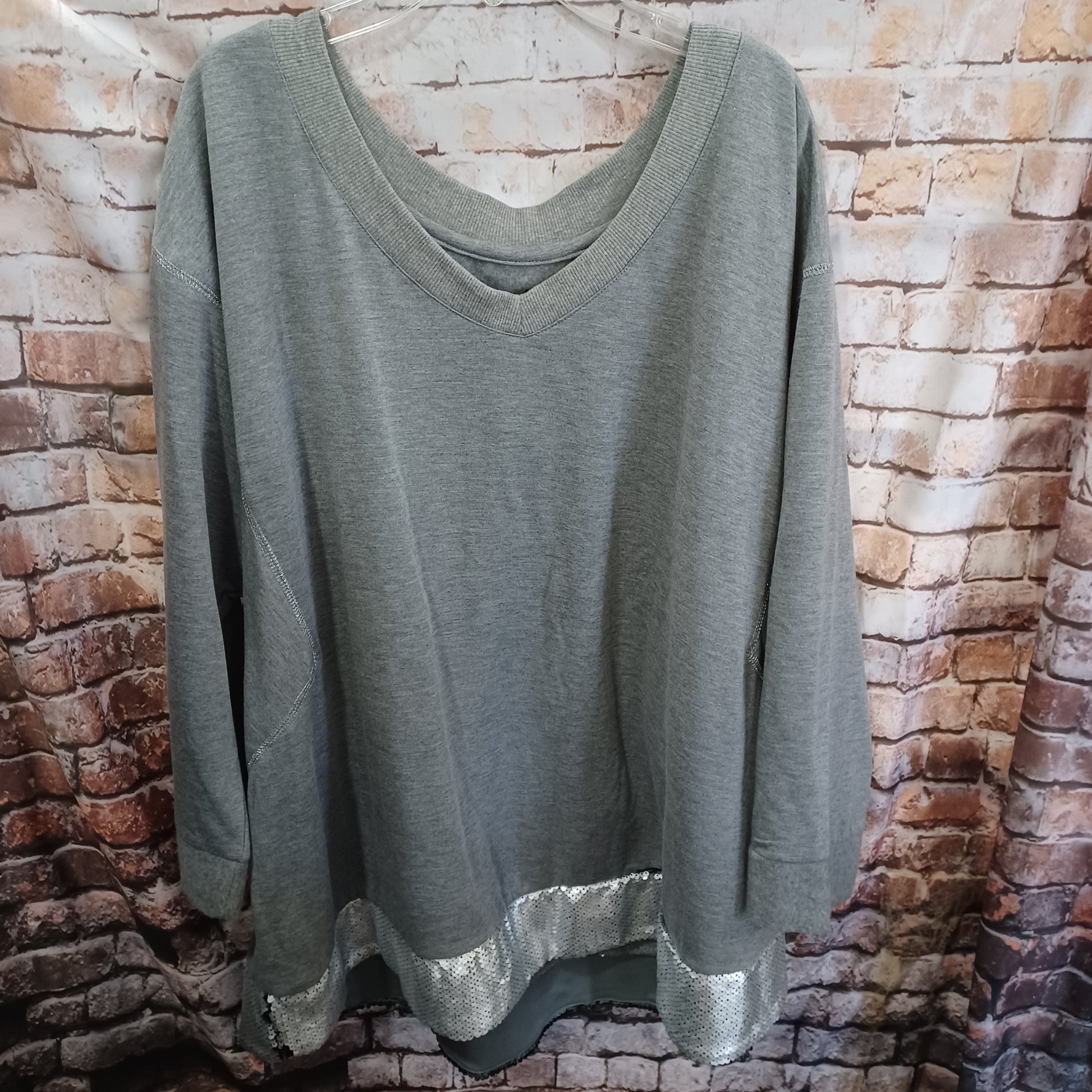 Three quarter sleeve grey sweatshirt with changing sequin on the waist from silver to black. Brand new with tags,