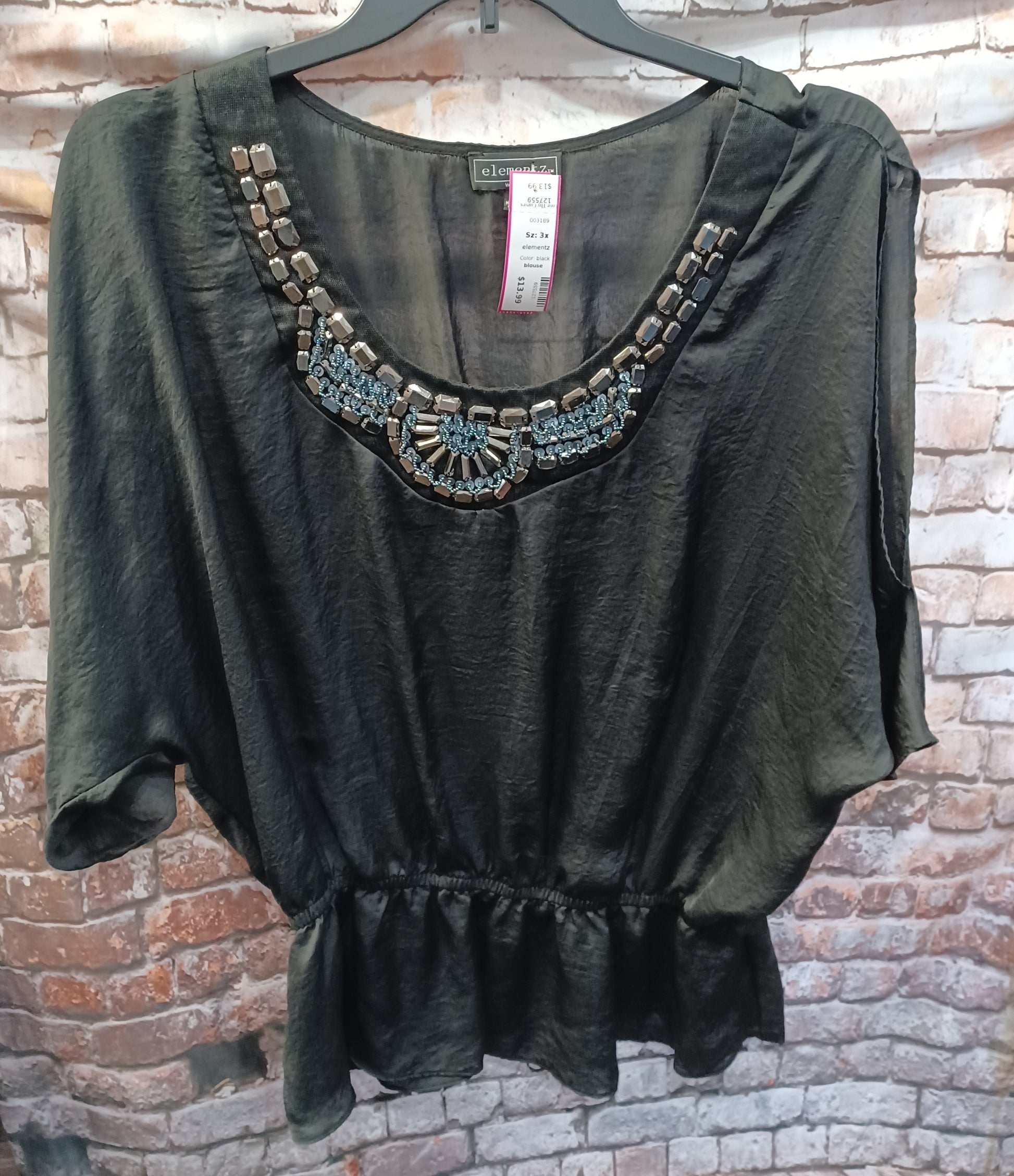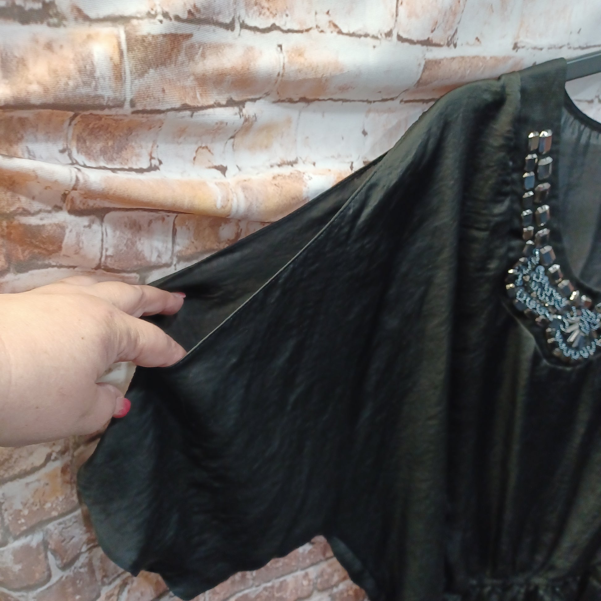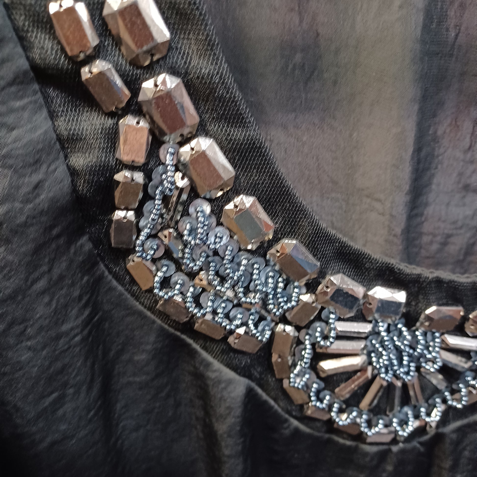 Beautiful black blouse with cold shoulder cut outs and bead work. Dress up with ease.