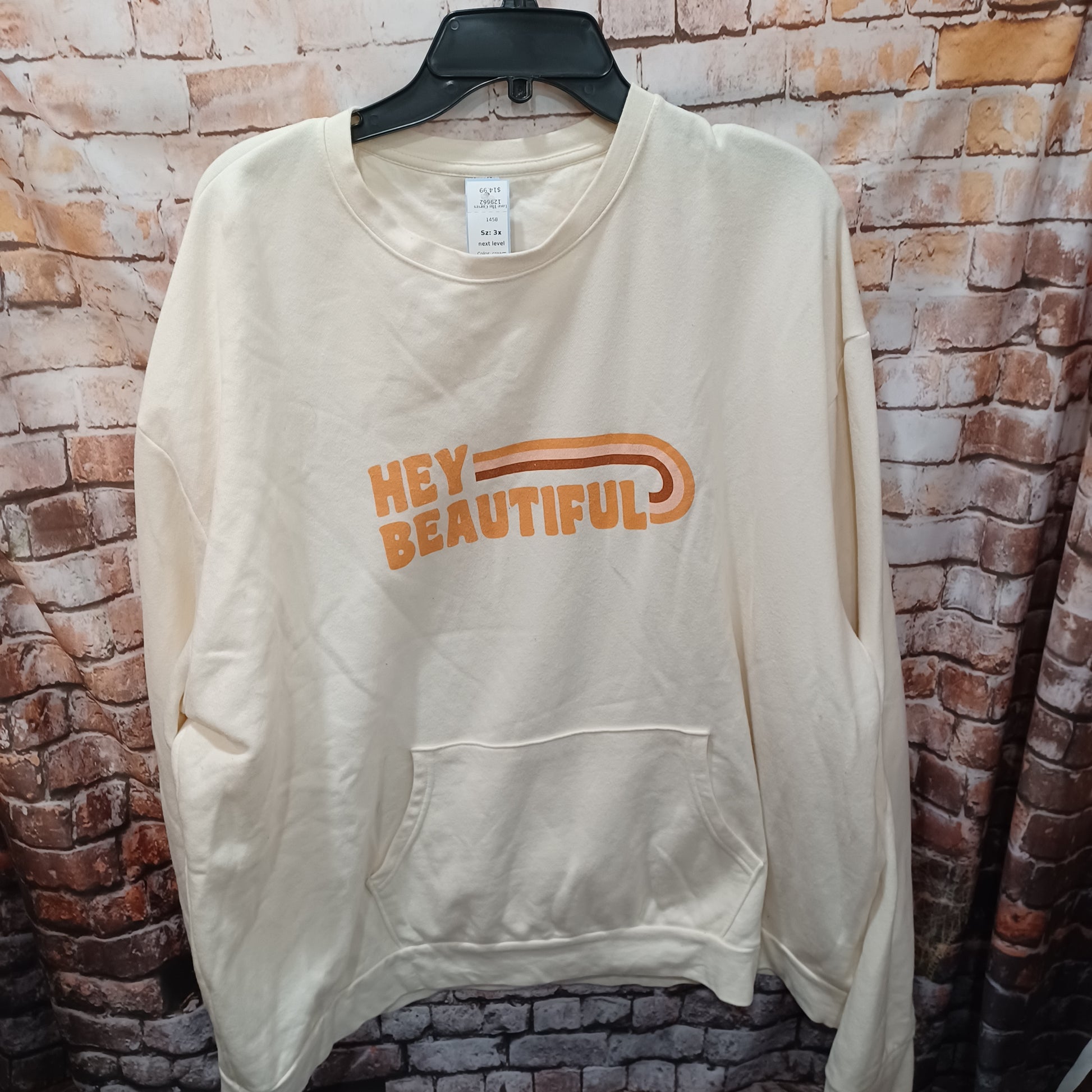 Long sleeve sweatshirt in white with Hey beautiful graphic on the front in a retro design.