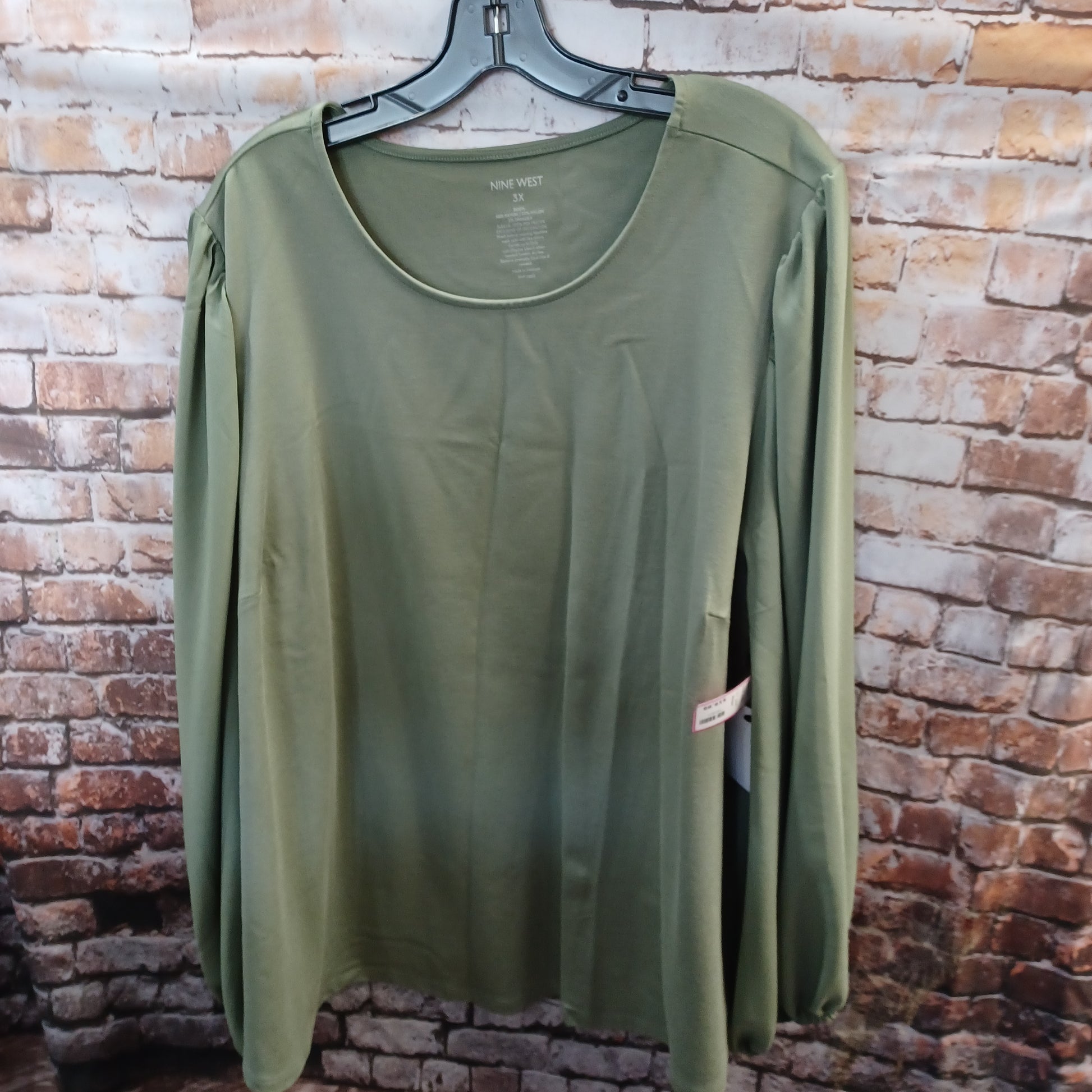 Long sleeve blouse in a muted green color that is brand new with tags and a great wardrobe staple.