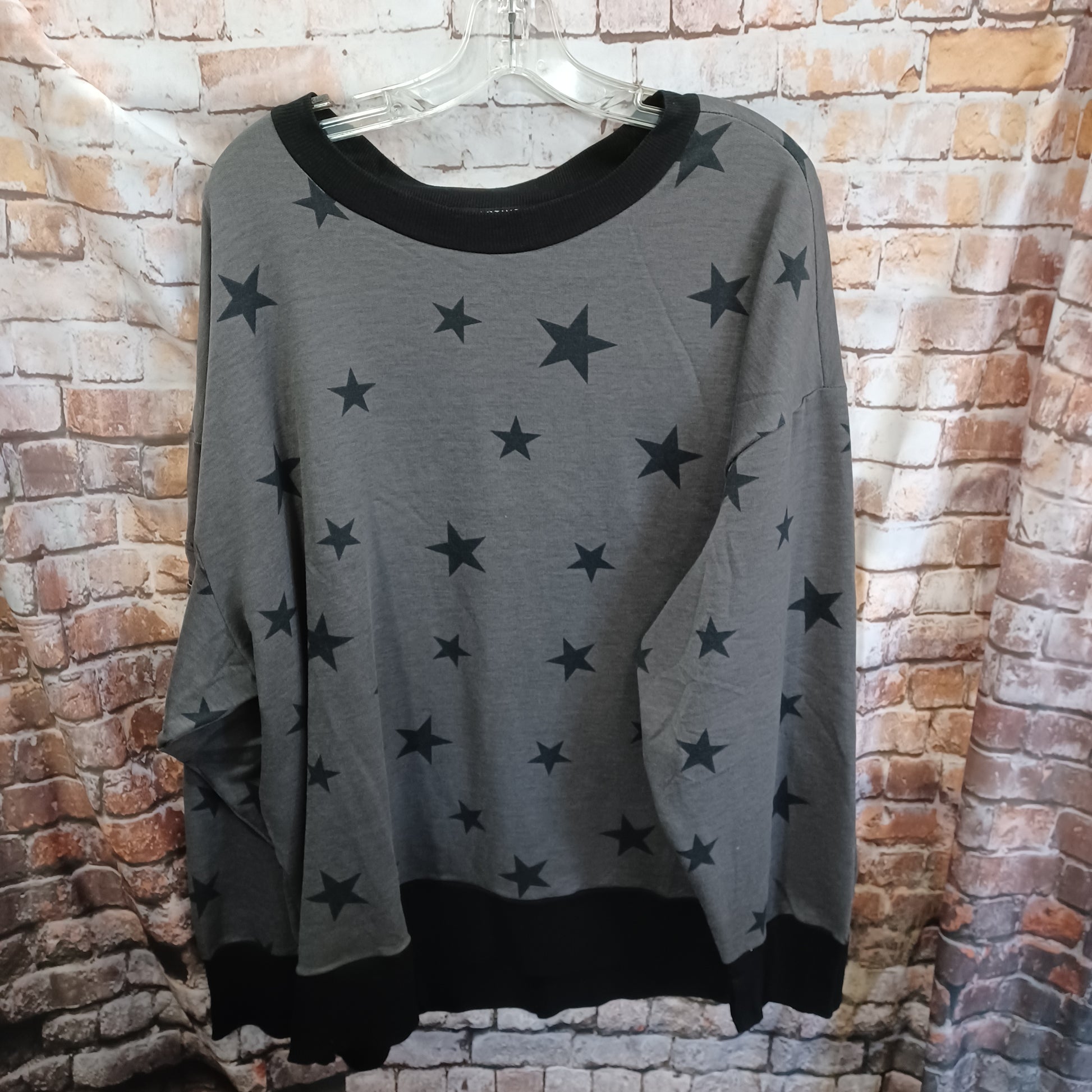 Long sleeve sweatshirt in grey and black with star print. Brand new with tags.