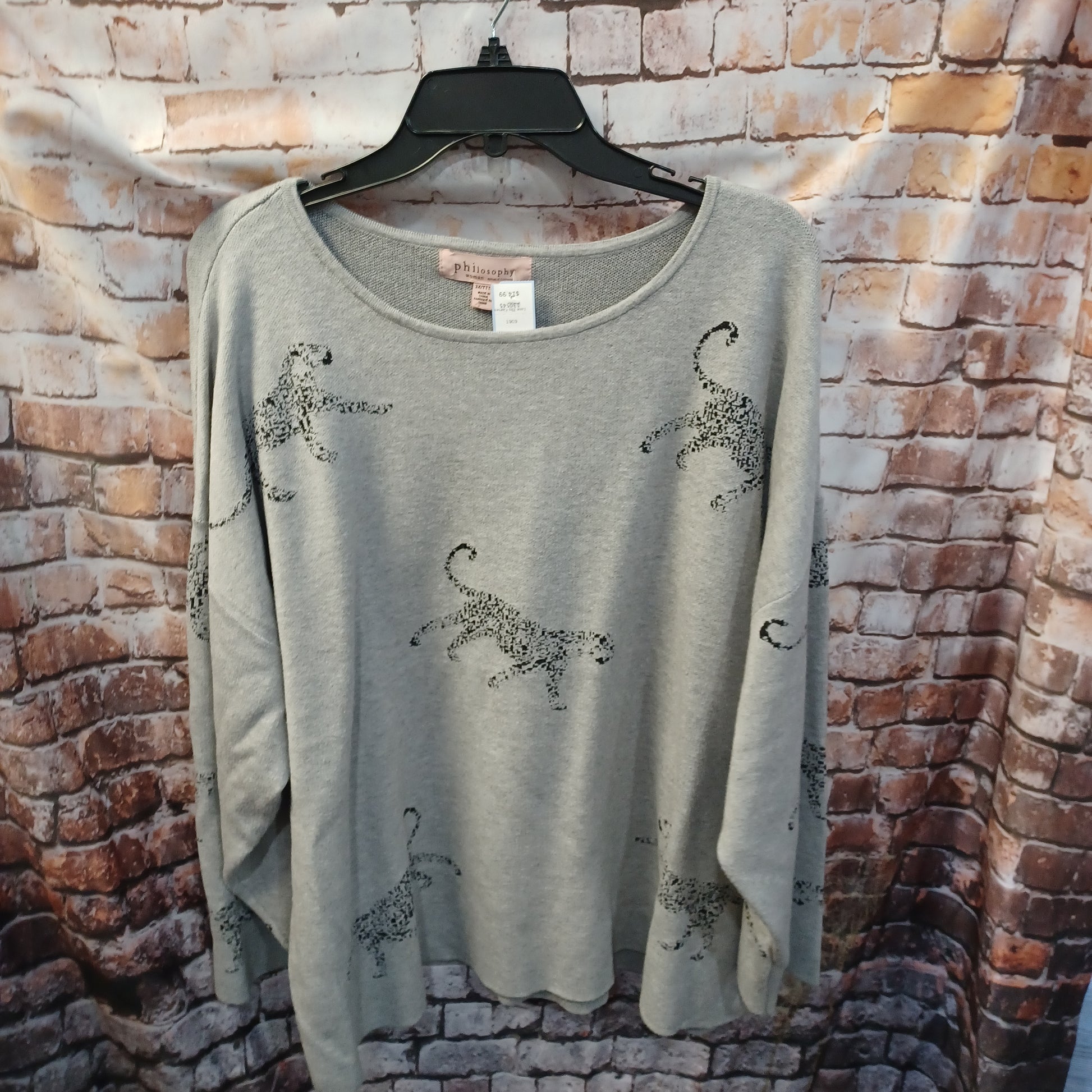 Long sleeve sweater in grey with cute leopard cats knitted in black.