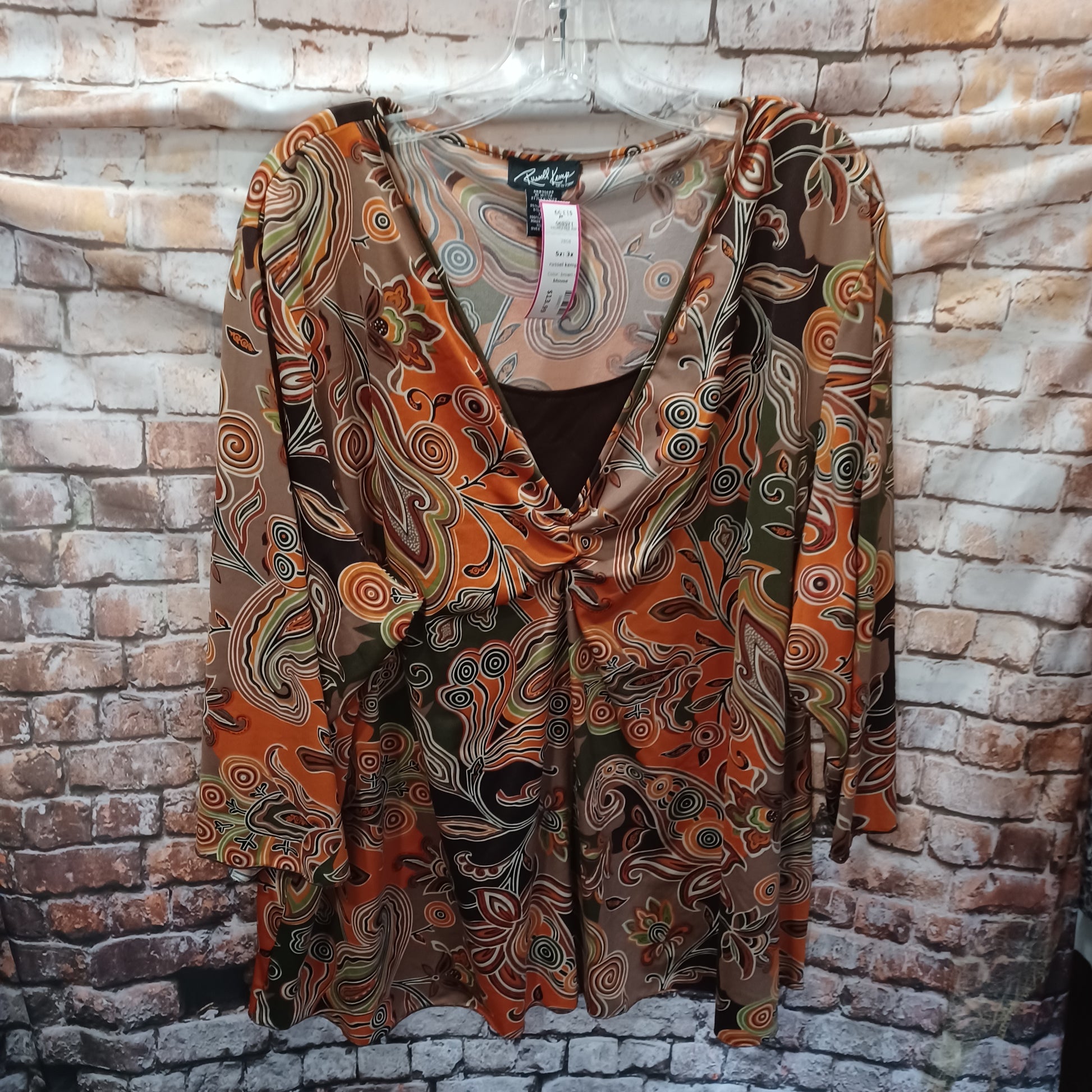 Three quarter sleeve blouse in all the fall colors. Modesty panel sewn in and sure to flatter!