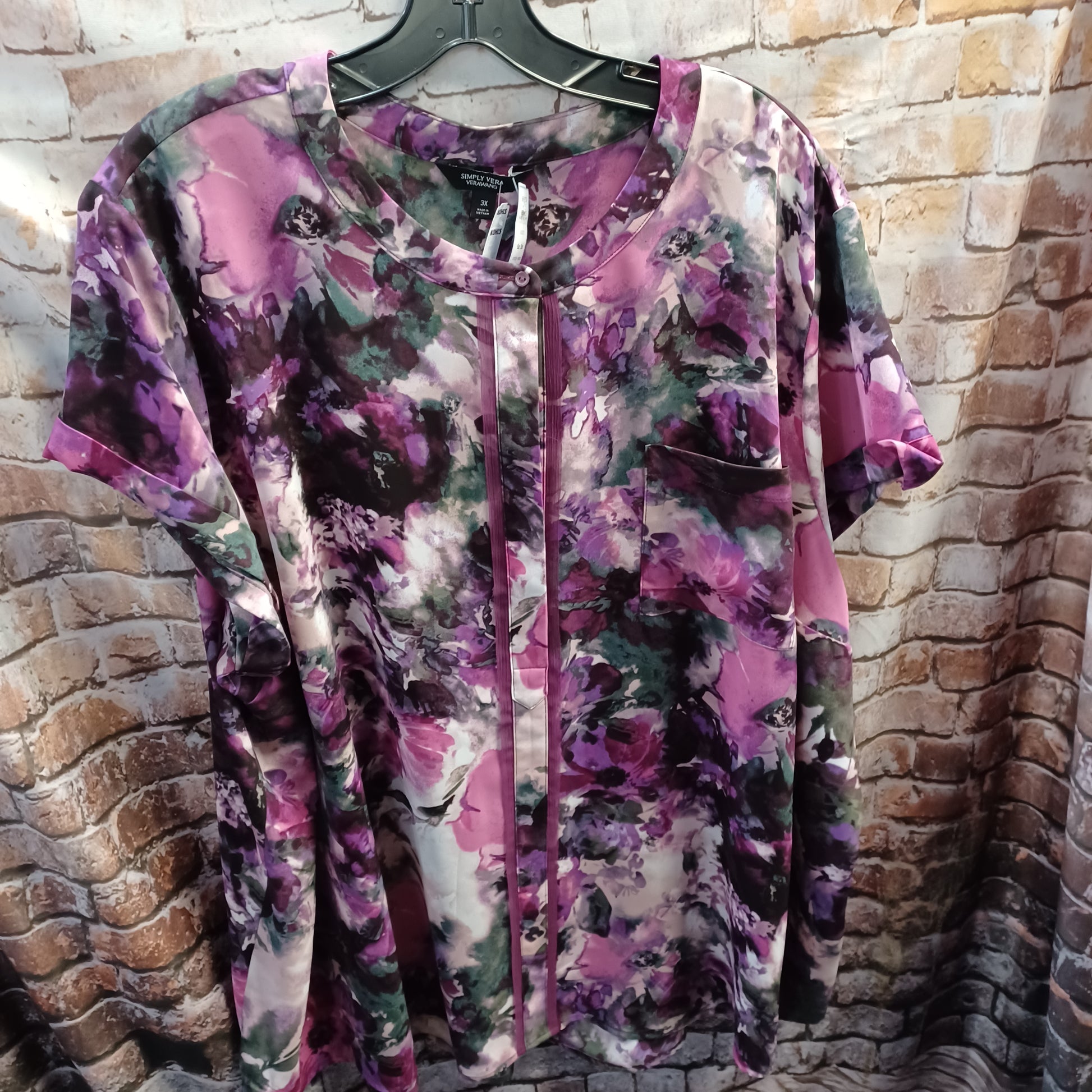 Brand new with tags. Short sleeve purple floral blouse. Can be dressed up or down and worn all year round.