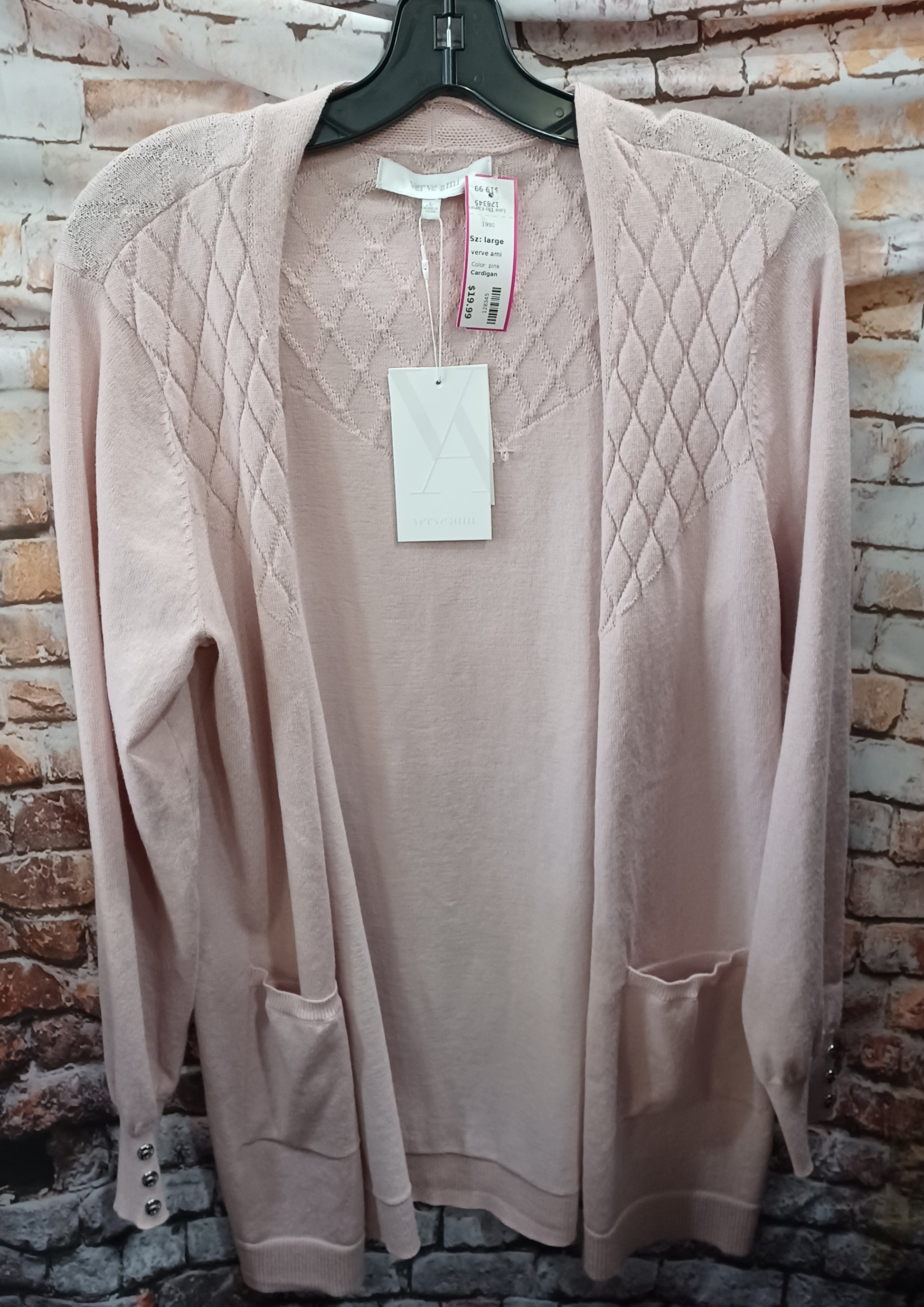 Long sleeve cardigan in pink with no close front. Brand new with tags.