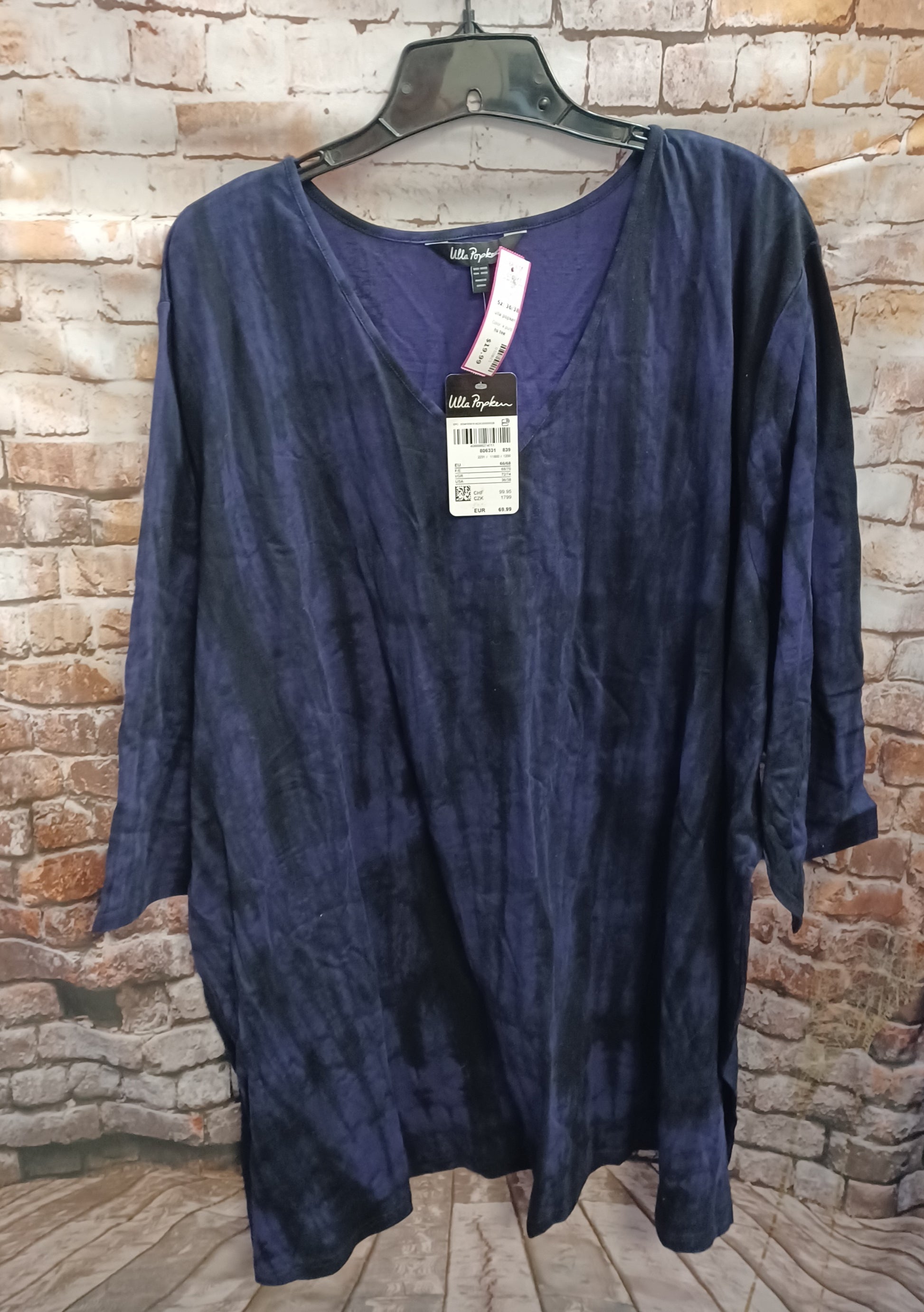 Half sleeve knit top in black and purple print. Brand new with tags.
