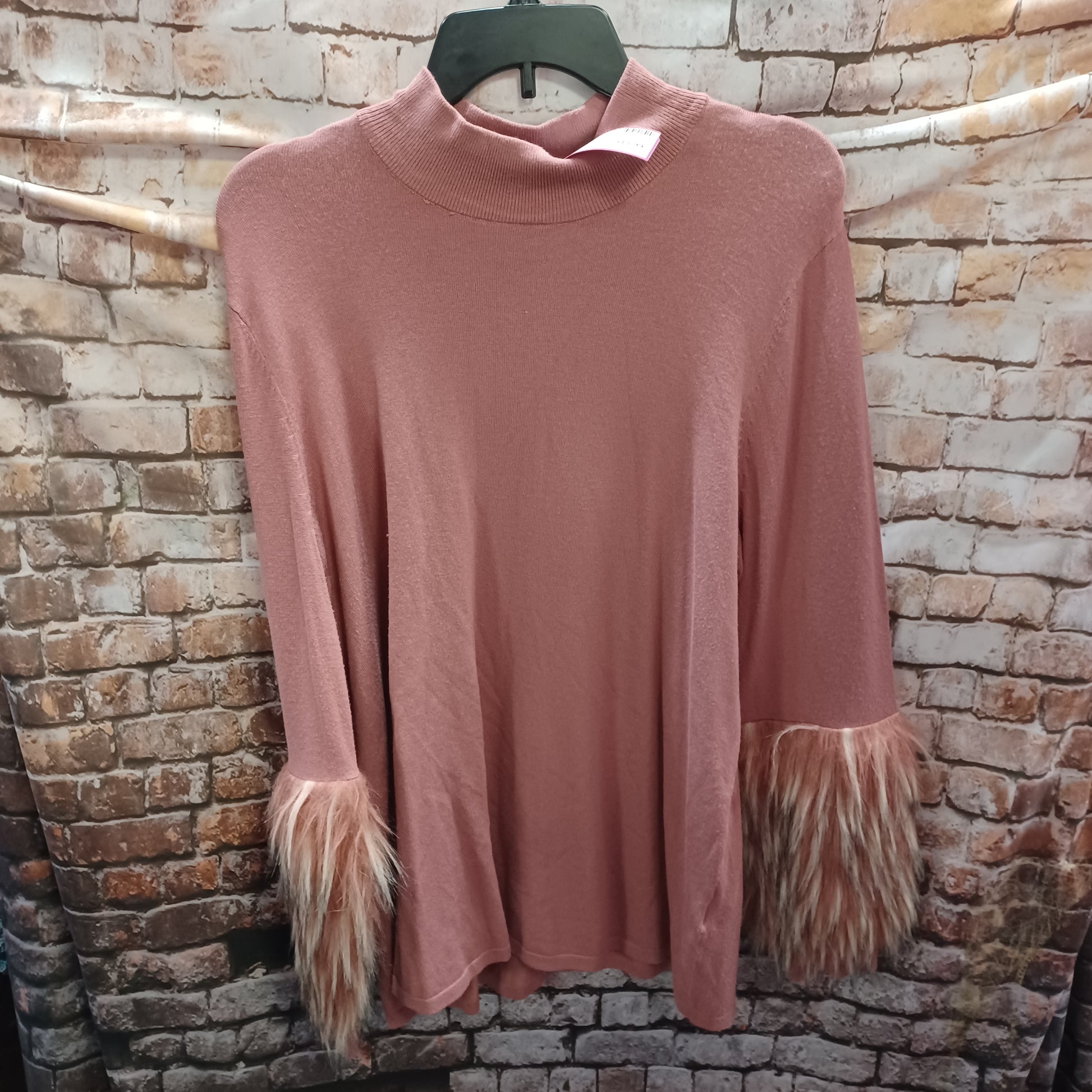 Super fun sweater in mauve. Long sleeves with faux fur cuffs. Make them take a second look with this great trendy piece.