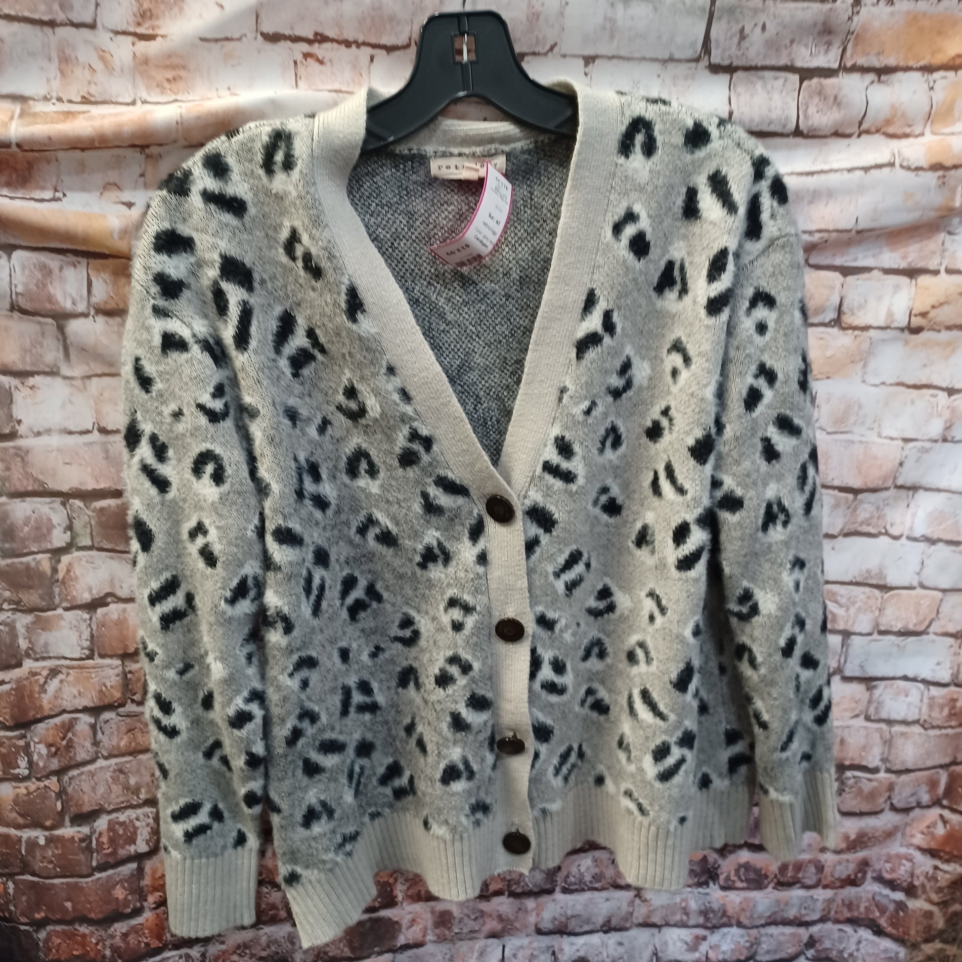 Long sleeve cardigan sweater in a grey leopard print. And soooooo soft!