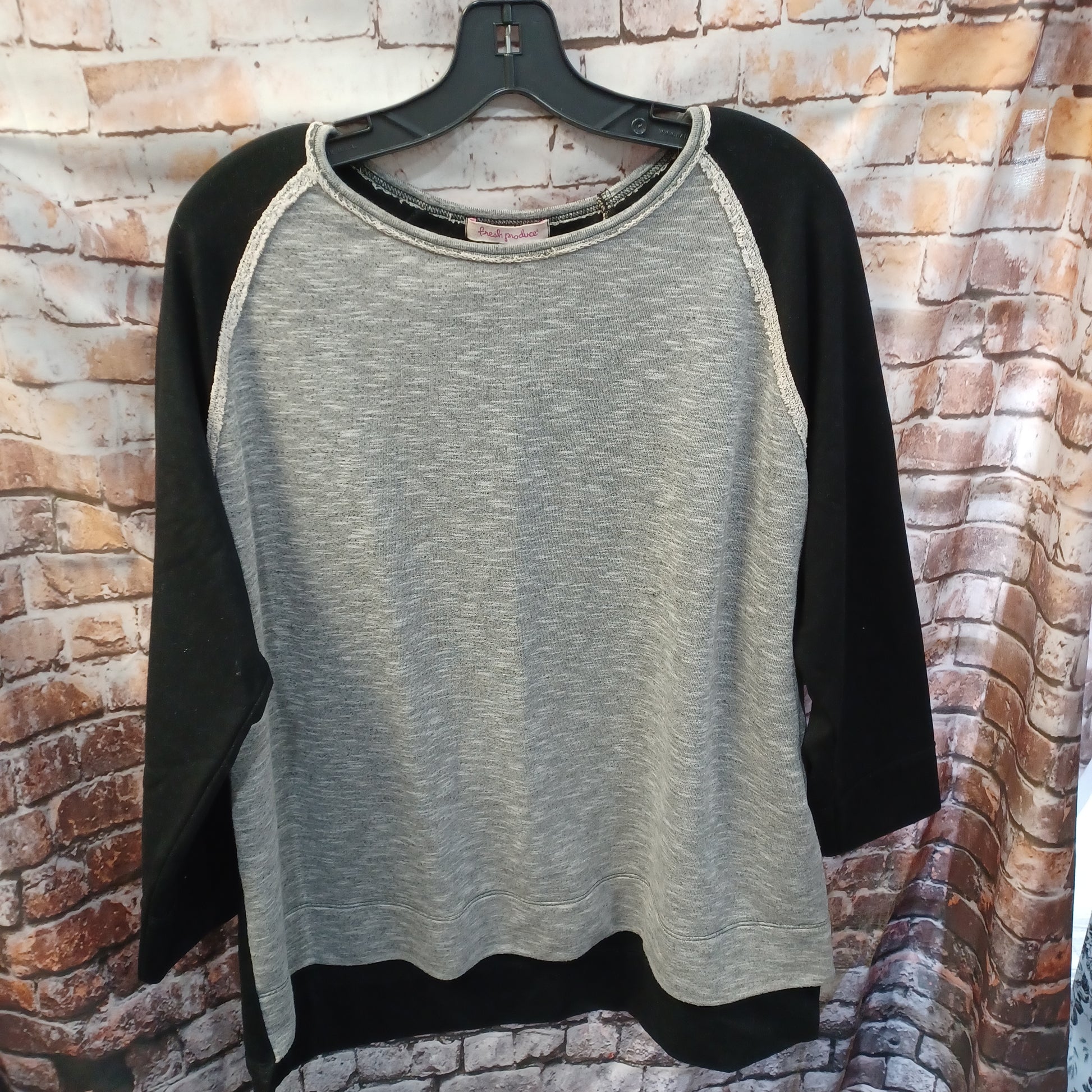 Long sleeve sweatshirt with grey front panel and black sleeves and back